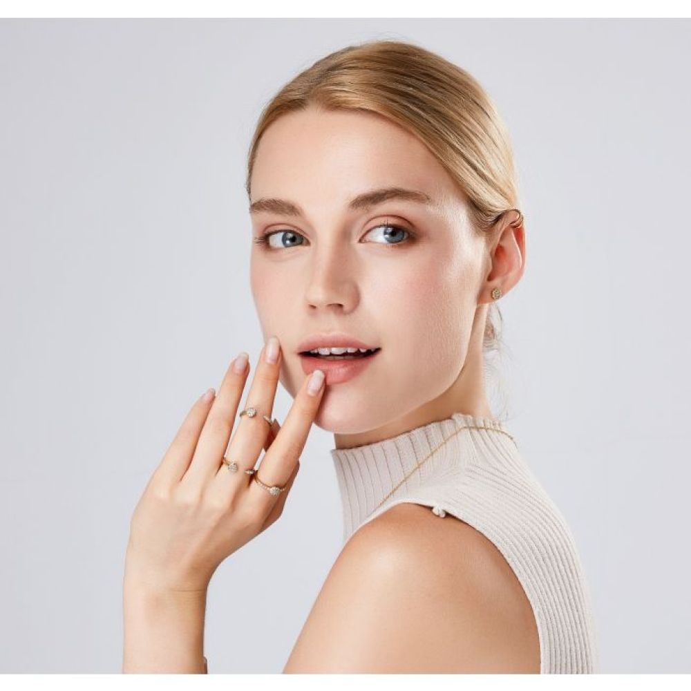 这款银色的指环嵌有闪烁的锆石,展现出完美的和谐感。不论是与三部曲系列的戒指叠戴,或是与我们的链接戒指搭配使用,都能散发动人气息。