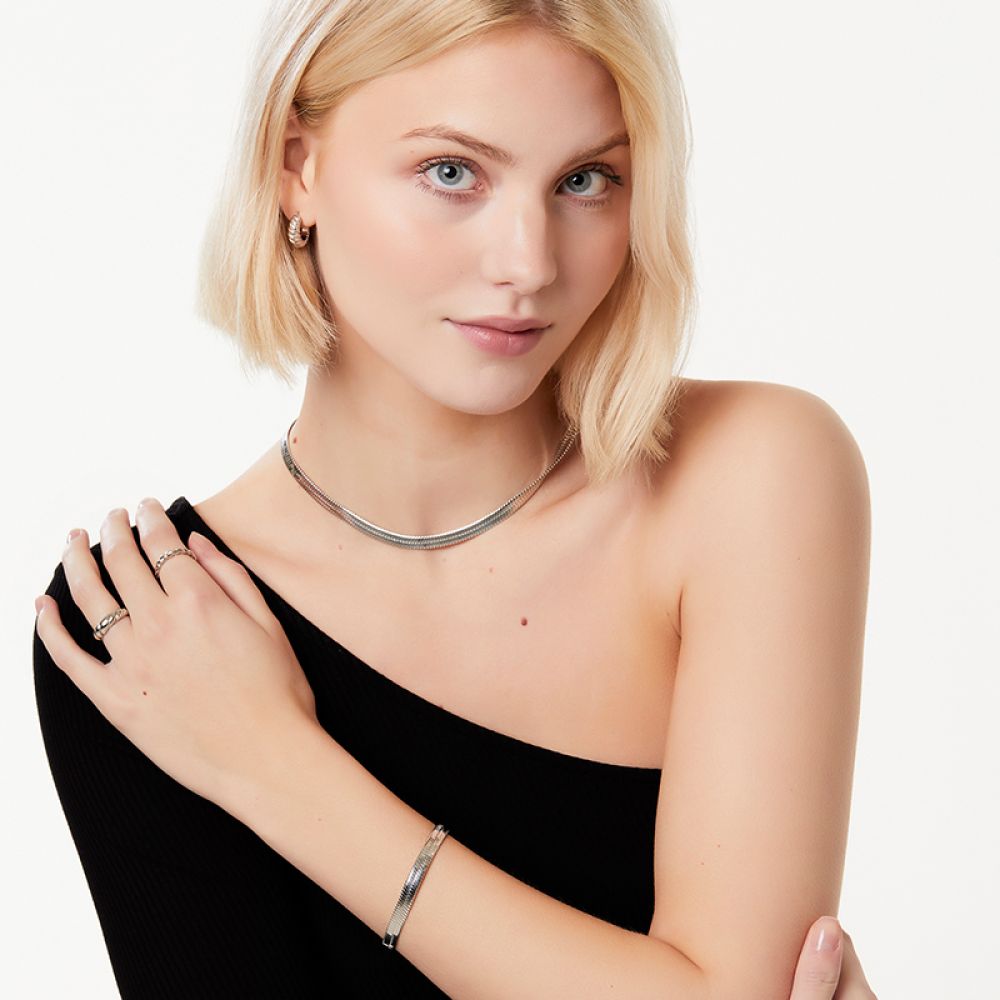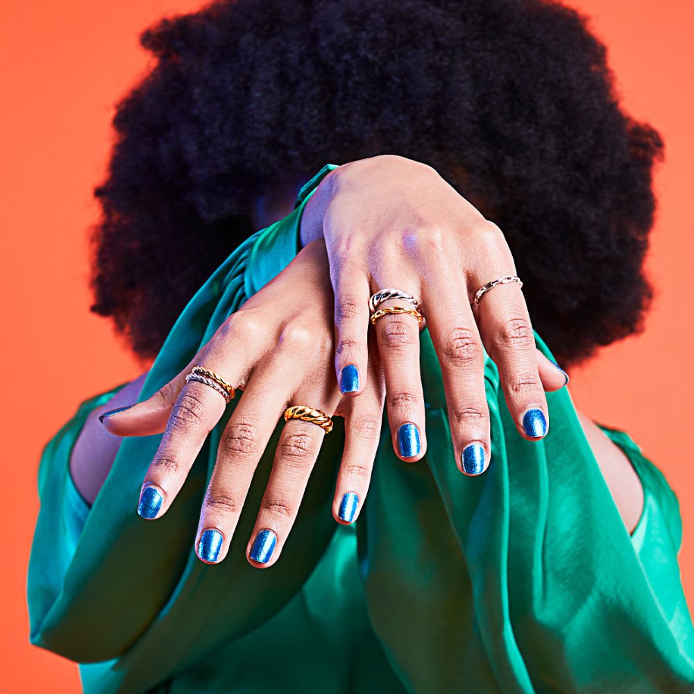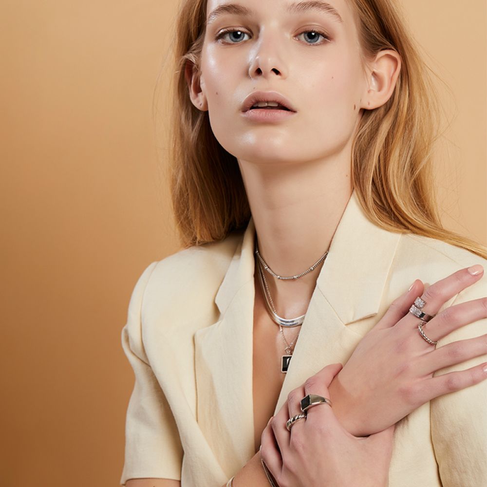 精致而带点不对称的美;完美的可叠戴戒指正等著您戴上它。