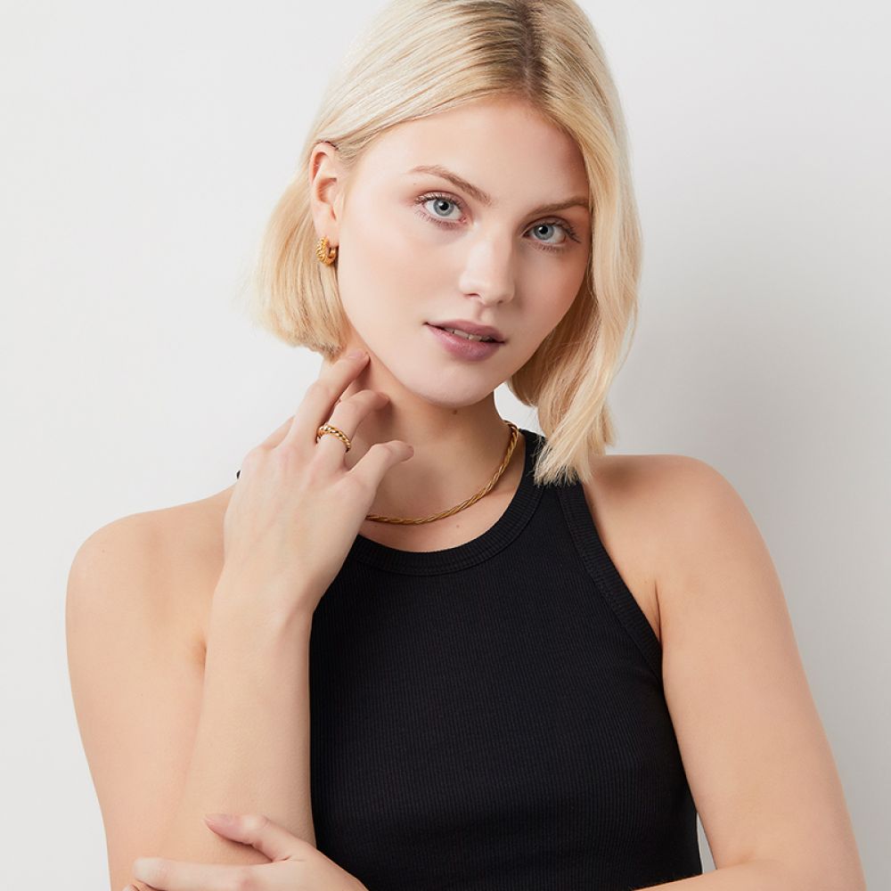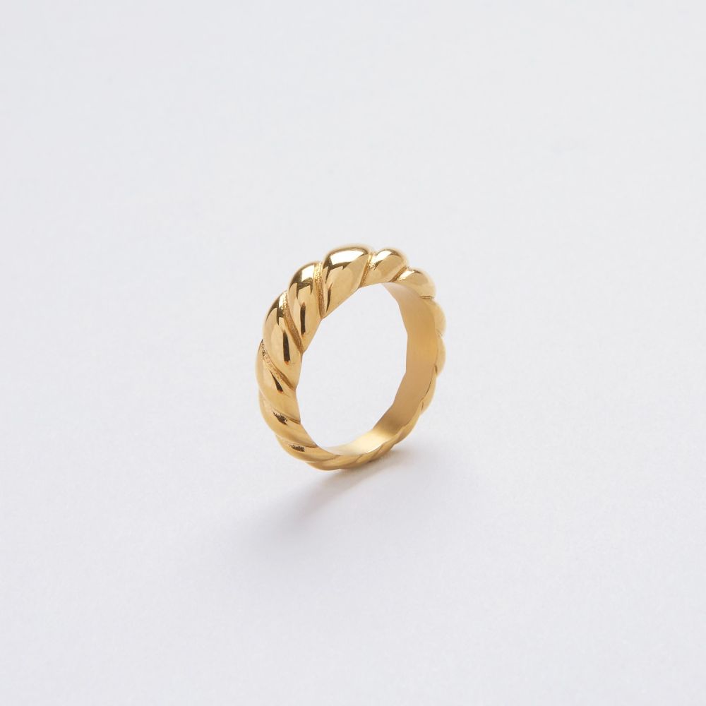厚厚的的圆拱扭纹戒指是时间要添加到您的珠宝箱。牛角包般的扭纹图案为经典圆拱型增添玩味。
