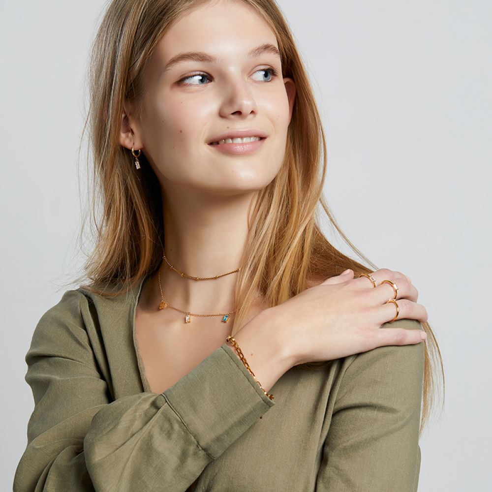光滑的戒指搭配长方形锆石。