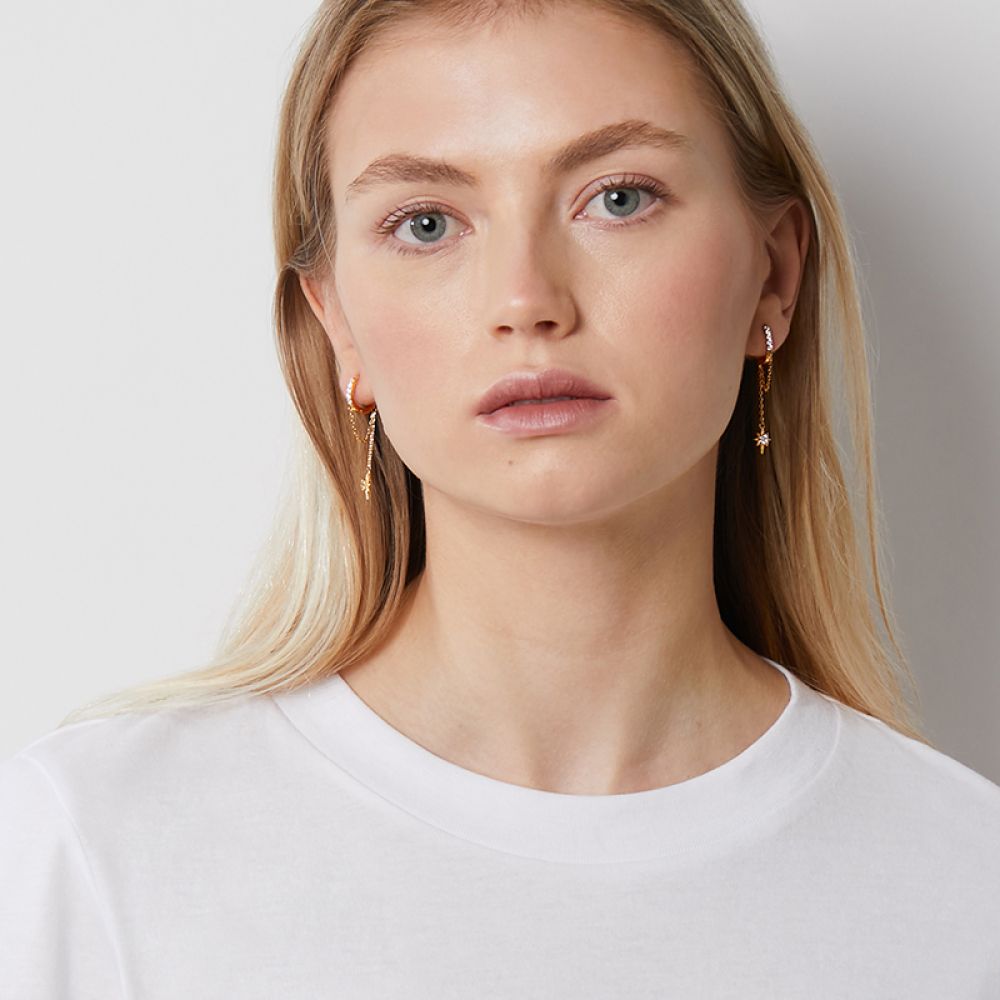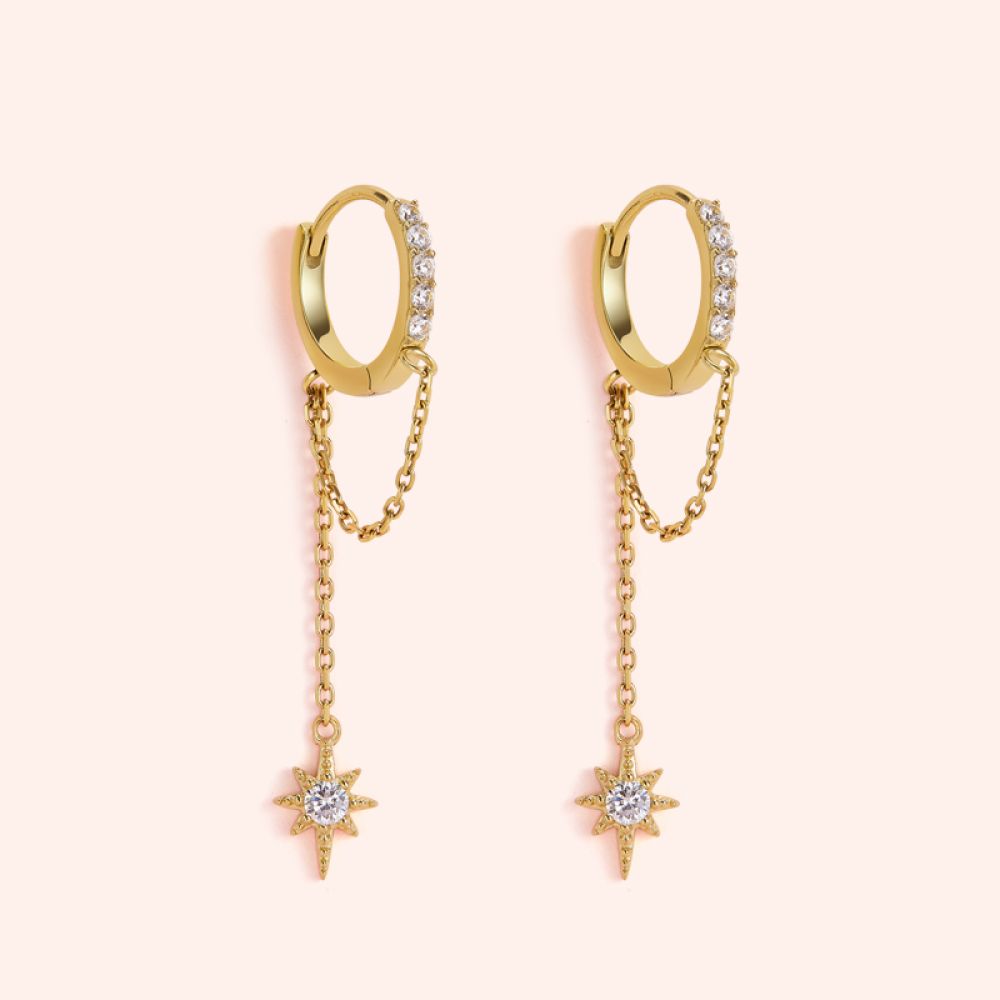 这款北极星项链的中心有一块较大的闪亮宝石,上面悬挂着时尚的链条。戴上这些,你会看起来既时髦又酷。